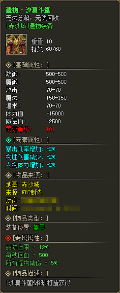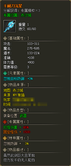 地图赤沙城区域[赤沙石墓]的珍奇异兽,专属技能[霜雨]附带冰冻特性,有几率冰冻玩家或者怪物