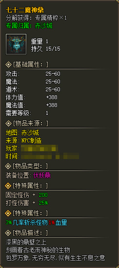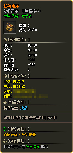 地图赤沙城区域[妖兽荒原]的珍奇异兽,拥有极快的单体攻击速度,专属技能[迅捷]能提高玩家的攻击速度,游戏内唯一攻速增益属性